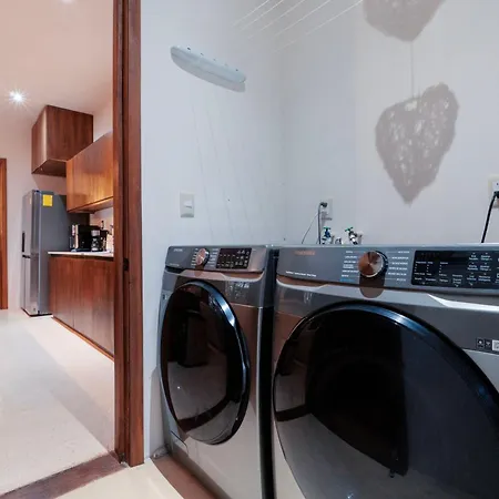 O apartamento Amar Tulum tem terraço e cozinha totalmente equipada, e confortos como máquina de lavar e controle de temperatura.
